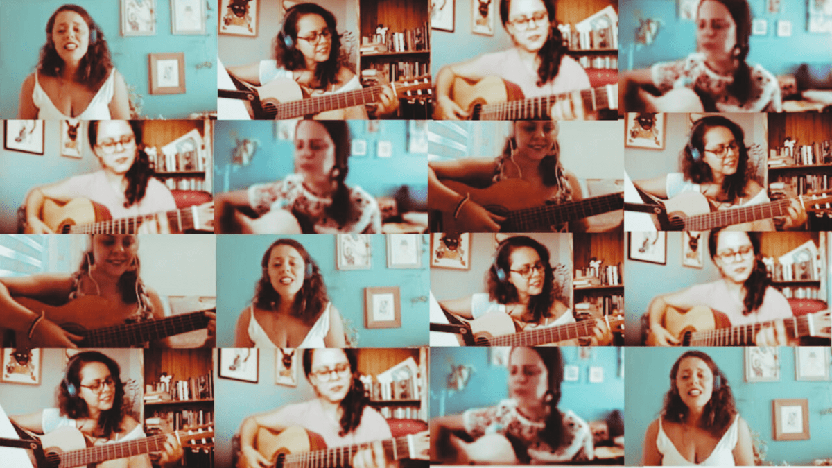 Between 2020 and 2021, during the Covid-19 pandemia, I participated in video performances of the Bandão Virtual, from the Escola Portátil de Música (RJ), playing guitar and singing.